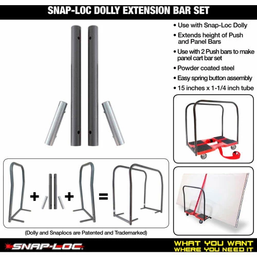 Snap-Loc SLABEI Dolly Extension Bar Set – Use With Push Bars To Make Panel Cart Or Extends Height Of Bars