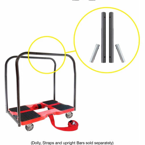 For use with the Snap-Loc Dolly. Extension Bar Set extends the height of Snap-Loc Push Bars and Panel Bars to accommodate all types of tall cargo. With our interchangeable bar design you can take 2 Push Bar Sets + 1 Extension Bar Set and make = 1 Panel Cart Bar Set. These heavy duty steel bars are protected with a durable heat treated powder coat. The Snap-Loc Dolly when used as a Panel Cart allows you to haul a whole new range of bulky items making your moving job much easier, safer and faster. Another great feature of bar sets is our multipoint disconnection design great for storing away in a small space. Need E-Straps to connect to your Snap-Loc Dolly? Check out our heavy duty Cam and Ratchet E-Straps. Don’t forget about our 6 inch Dolly Connector Straps for Inter-Connecting your Dollies. Compliment your Snap-Loc Cargo Control System with “Snaplocs” (E-Track Singles) for positive locking E-Strap connection to your Pickup Trucks, Trailers, Lumber Racks and more