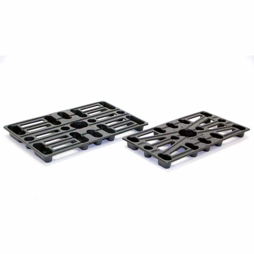 Plastic Pallet designed especially for EZY-Tiltâ„¢ Pallet Fork Hand Truck. Pallet has a stringer height of 1-1/2″ to meet your various handling needs (2″ Overall Height). Pallets are black in color and easily handle up to 800 lbs.