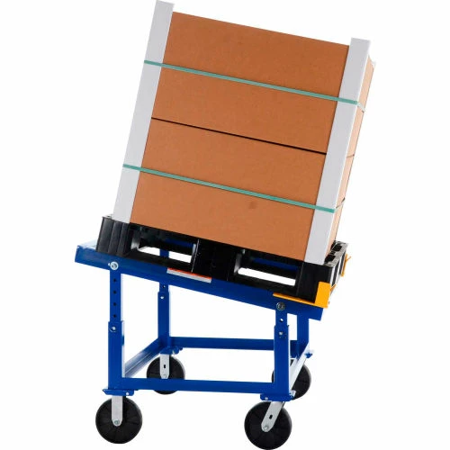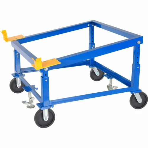 Reduce forklift truck dependency by transporting pallets and crates to workstations with the Economical Pallet & Container Transporter. Feature 8″ glass-filled nylon casters for easier mobility. Adjustable height can only be adjusted when unloaded. Corner guides are standard for extra stability. Durable steel construction with a powder coat finish.