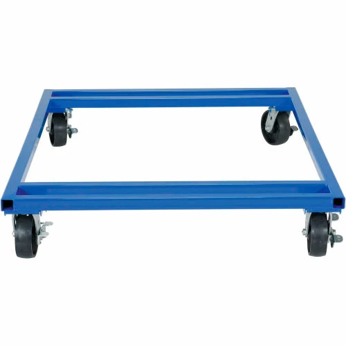 This 48″L x 40″W Steel Pallet Dolly is made of all-welded open frame steel for long lasting durability and dependability. Blue powder coat finish. Moves easily on four 6 x 2 mold-on rubber swivel casters. 9-1/4 deck height.